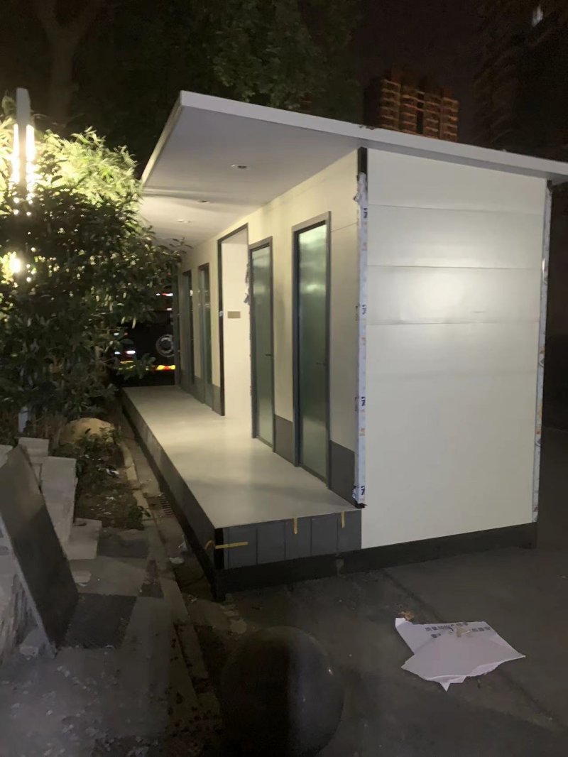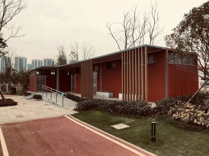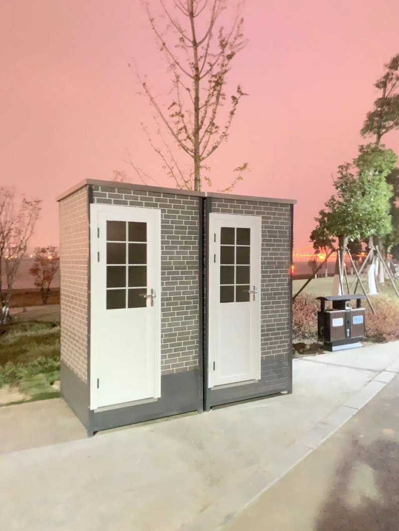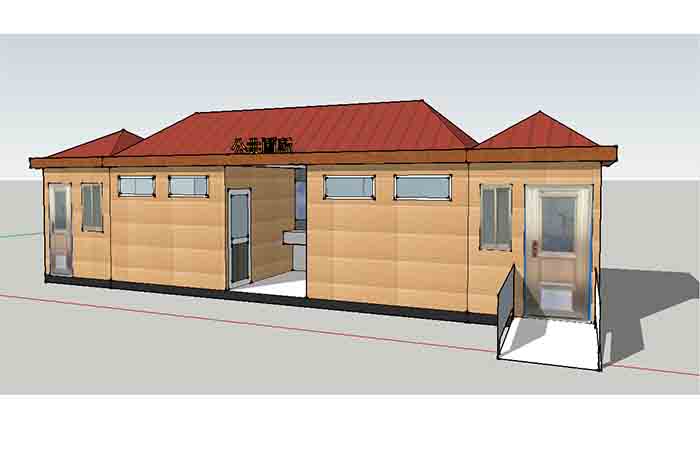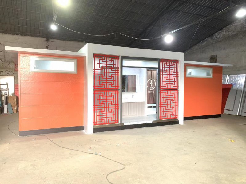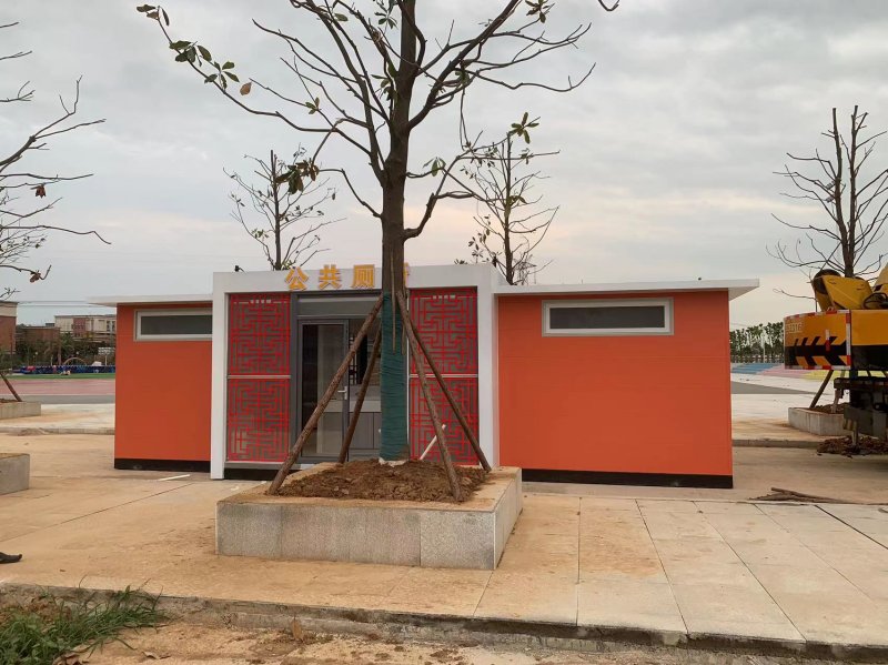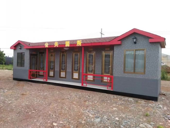 拼裝廁所;在廠(chǎng)里做好各個(gè)廁所部件,再到現(xiàn)場(chǎng)組裝在一齊,適合不易運(yùn)輸?shù)拇笮蛶_@座箱式廁所,女廁5個(gè)蹲位內(nèi)配工具間,男廁2個(gè)蹲位+2小便斗,第三衛(wèi)生間由殘疾馬桶、助力洗手盆和兒童馬桶、兒童洗手盆外加?jì)雰号_(tái)等設(shè)施。廁所前后有窗,通風(fēng)采光,前部走廊裝有屋檐,防雨防曬。此廁所位于公路綠道邊,整體大氣,功能齊全,造型美觀,是一道難得的靚麗景觀!